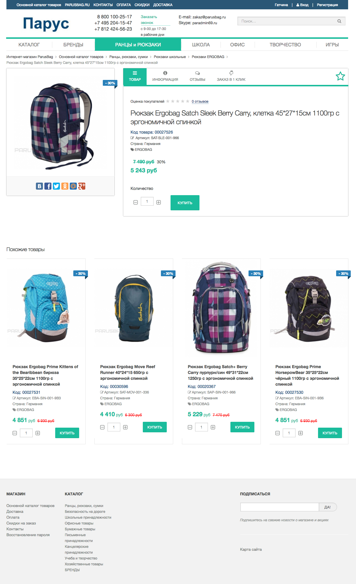 Интернет-магазин школьных принадлежностей и товаров для офиса Parusbag.